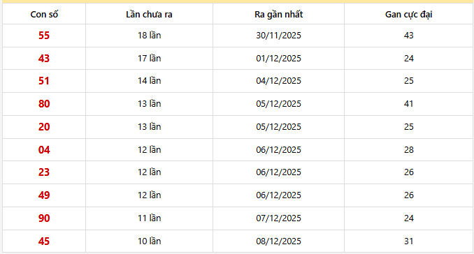 ⭐️ Cặp số lâu xuất hiện nhất XSMB (30 kỳ quay): 55 - 43 - 51 - 80 - 20 - 04