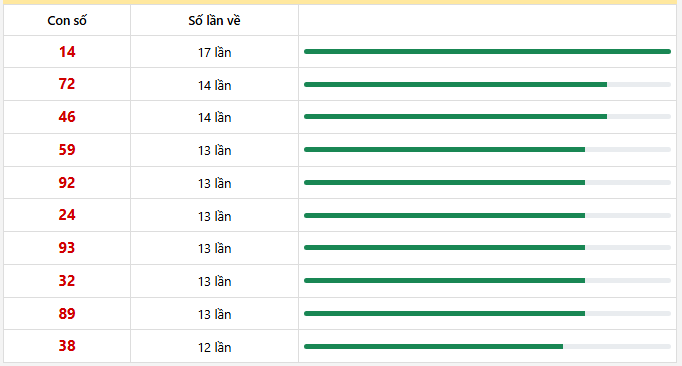 ⭐️ Lô tô hay về (30 kỳ): 14 - 72 - 46 - 59 - 92 - 24