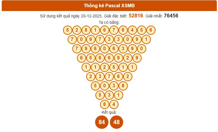 Phương pháp Pascal là lựa chọn phổ biến để dự đoán xổ số miền Bắc ngày 21 tháng 12 năm 2025. Bạn có muốn biết bảng số Pascal hôm nay sẽ mang đến những gợi ý may mắn nào không? Cùng theo dõi ngay bên dưới.