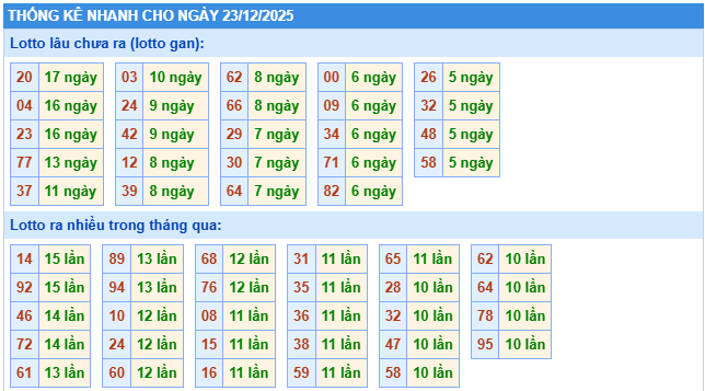 Nhằm mang đến cho bạn đọc thêm cơ sở tham khảo khi dự đoán XSMB 23/12/2025, chúng tôi đã tiến hành tổng hợp và phân tích các thống kê chi tiết liên quan.