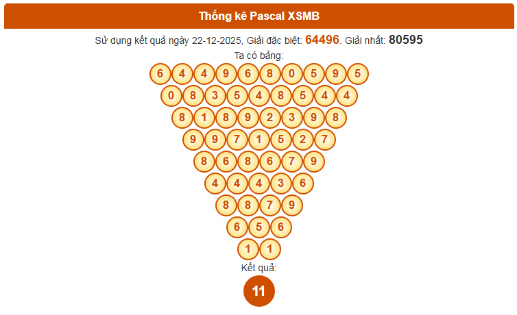 Phương pháp Pascal từ lâu đã được nhiều người áp dụng trong việc dự đoán XSMB ngày 23/12/2025. Những con số may mắn được bảng Pascal gợi ý hôm nay là gì? Mời bạn cùng theo dõi chi tiết ngay bên dưới.