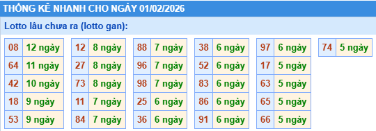- Bảng thống kê lô gan Miền Bắc lâu chưa về tính đến ngày 1/2/2026
