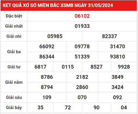Bí kíp giúp dự đoán Kết quả xổ số miền Bắc ngày 1/6/2024 chính xác nhất là dựa trên kết quả Miền Bắc những ngày trước đó kết hợp cùng thuật toán xác suất Phân tích thống kê chuyên sâu và những nhận định của chuyên gia để đưa ra kết quả chuẩn xác nhất trong ngày hôm nay.