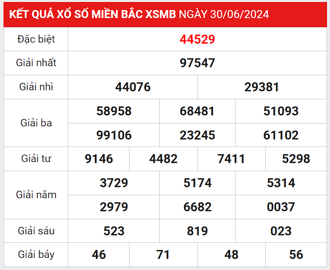 Dự đoán KQ xổ số miền Bắc 1/7/2024 - Thống kê số liệu Kết quả xổ số miền Bắc siêu chính xác vào lúc 18h15p ngày 1/7/2024. Có nhiều phương pháp dự đoán XSMB khác nhau được áp dụng ví dụ như dự đoán bạch thủ, dự đoán loto gan, soi cờ bạc nhớ, đề về kép lệch hôm sau đánh con gì để đưa ra những dự đoán bảng đặc biệt ngày mai, cầu đẹp nhất hôm nay có thể về giúp người chơi tham khảo và đưa ra lựa chọn chính xác nhất.