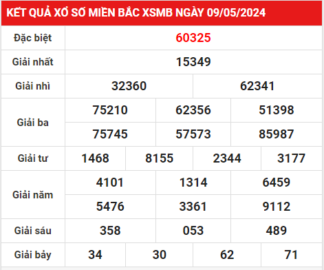3. Thống kê Kết quả xổ số miền Bắc 10/5/2024 hôm nay thứ 6