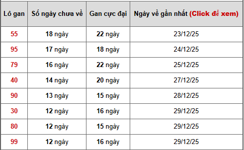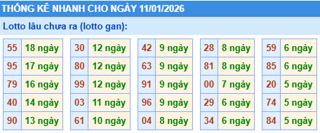 - Bảng thống kê lô gan Miền Bắc lâu chưa về tính đến ngày 11/1/2026