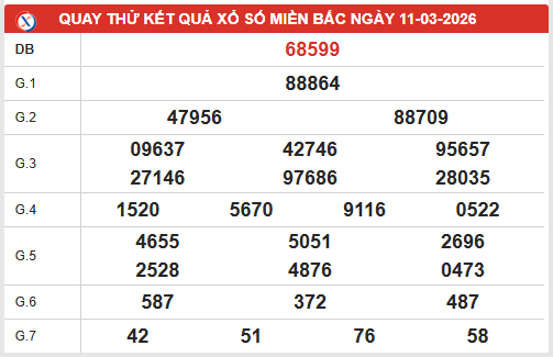 Quay thử xổ số MB ngày 11/3/2026 mang đến những bộ số may mắn được máy tính phân tích từ dữ liệu soi cầu xổ số miền Bắc ngày 11 tháng 3 năm 2026. Cùng tham khảo bảng quay thử MB dưới đây để khám phá các con số thần tài đầy tiềm năng.