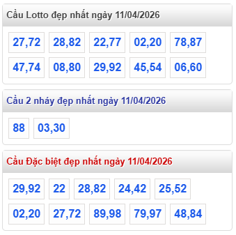 Lưu ý : "Quy luật đẹp nhất" là do hệ thống tự động tính toán theo một số tiêu chí mà XỔ SỐ WAP tính toán. Các bạn nên tham khảo dự đoán kết quả xổ số miền Bắc ngày 11 tháng 4 năm 2026 để tìm ra cặp xổ số đẹp nhất.
