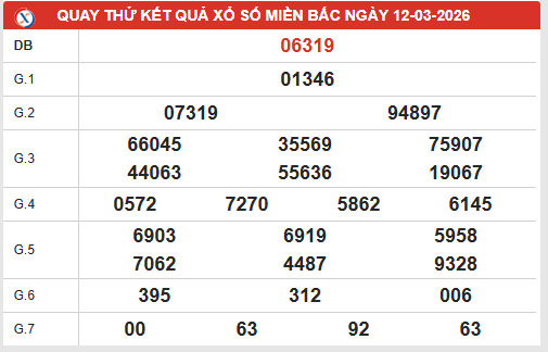 Quay thử xổ số MB ngày 12/3/2026 mang đến những bộ số may mắn được máy tính phân tích từ dữ liệu soi cầu xổ số miền Bắc ngày 12 tháng 3 năm 2026. Cùng tham khảo bảng quay thử MB dưới đây để khám phá các con số thần tài đầy tiềm năng.