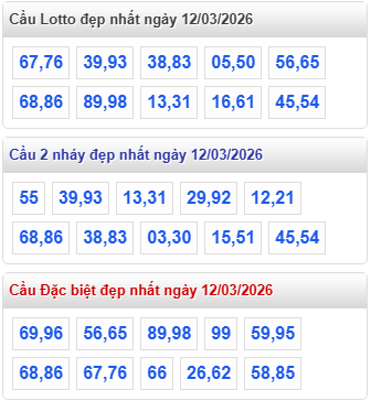Lưu ý : "Quy luật đẹp nhất" là do hệ thống tự động tính toán theo một số tiêu chí mà XỔ SỐ WAP tính toán. Các bạn nên tham khảo dự đoán kết quả xổ số miền Bắc ngày 12 tháng 3 năm 2026 để tìm ra cặp xổ số đẹp nhất.