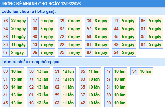 3. Thống kê xổ số miền Bắc ngày 12/3/2026 - Dàn số đẹp Miền Bắc