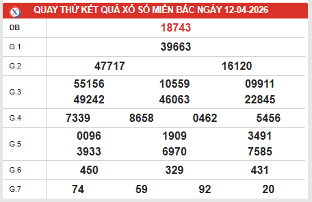 Đừng bỏ qua bảng quay thử xổ số miền Bắc ngày 12/4/2026 nếu bạn muốn nhanh chóng nắm bắt các con số sáng giá từ dữ liệu dự đoán XSMB ngày 12/4/2026. Việc so sánh với các kỳ trước sẽ giúp tăng độ chính xác khi lựa chọn.