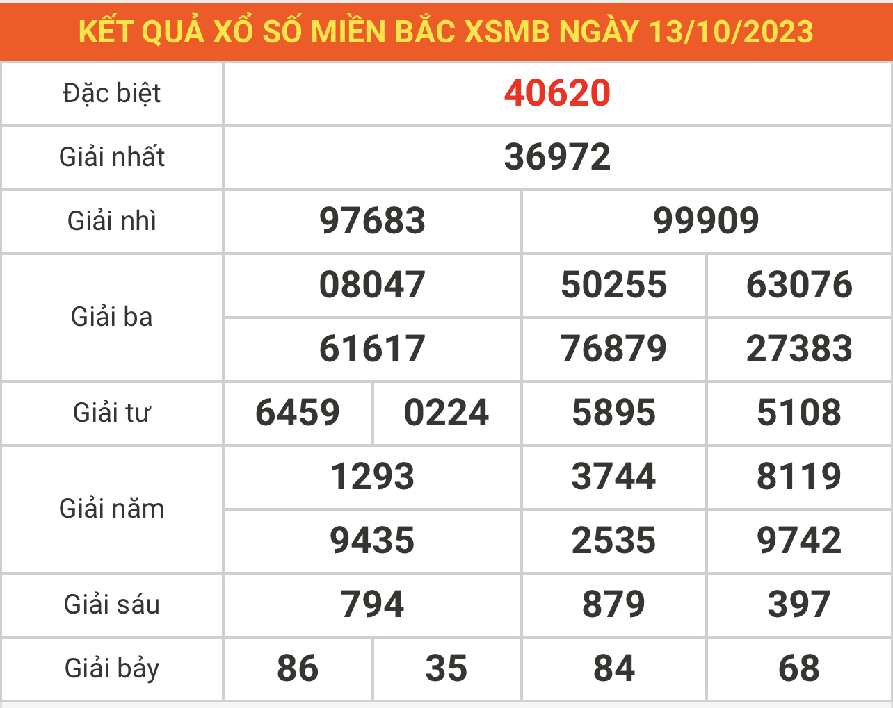 Xem lại bảng kết quả XSMB kì trước: