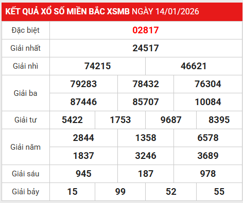 Trước khi dự đoán XSMB 15/1/2026, hãy cùng điểm lại kết quả xổ số hôm qua để nhanh chóng nhận diện các con số may mắn và nắm bắt xu hướng tài lộc hôm nay!