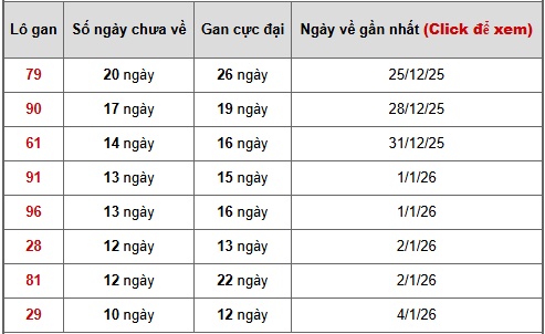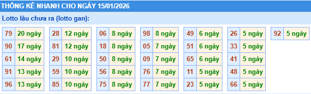 - Bảng thống kê lô gan Miền Bắc lâu chưa về tính đến ngày 15/1/2026