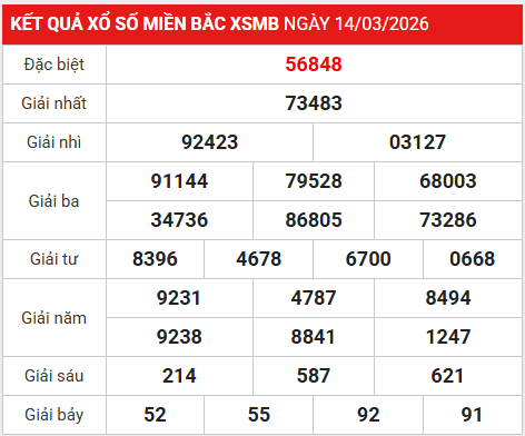 Trước khi tham khảo dự đoán XSMB ngày 15/3/2026, hãy cùng điểm qua kết quả XSMB tối qua để nhận diện những con số nổi bật trên bảng thống kê.