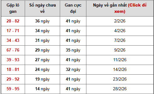 👉 Với diễn biến bảng gan hiện tại, khả năng cao các kỳ quay tới sẽ tập trung giải gan ở nhóm 30–36 ngày, trong đó 28–82 và 17–71 đang là hai cặp số thu hút nhiều sự chú ý trong các phân tích dự đoán XSMB.