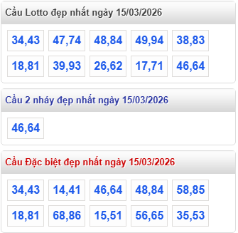 Dựa vào bảng cầu Lotto – cầu 2 nháy – cầu đặc biệt, có thể soi cầu Xổ số Miền Bắc ngày 15/3/2026 theo hướng tìm các cặp số trùng lặp giữa nhiều dạng cầu, vì đây thường là tín hiệu cầu mạnh.