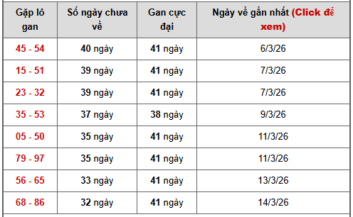 Dựa trên bảng cặp số lô gan XSMB, có thể thấy dàn cặp số đang bước vào giai đoạn gan “cực đại”, khi nhiều cặp đã chạm hoặc tiệm cận đỉnh lịch sử – đây là thời điểm dễ xuất hiện đột biến theo chu kỳ thống kê, đặc biệt được quan tâm khi soi cầu miền Bắc ngày 16 tháng 4 năm 2026.