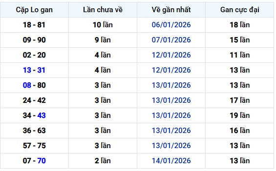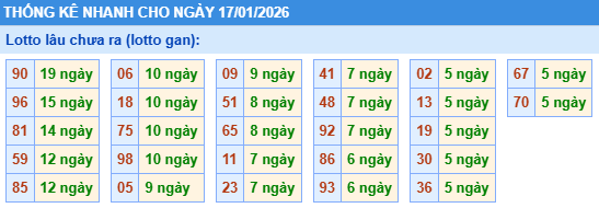 - Bảng thống kê lô gan Miền Bắc lâu chưa về tính đến ngày 17/1/2026