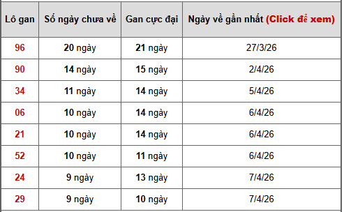 - Bảng thống kê lô gan Miền Bắc lâu chưa về tính đến ngày 17/4/2026