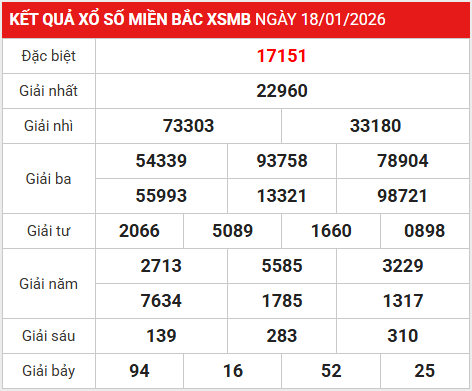 Trước khi bước vào dự đoán XSMB 19/1/2026, hãy cùng điểm lại kết quả xổ số hôm qua để nhận diện các con số nổi bật và xu hướng đang hình thành.