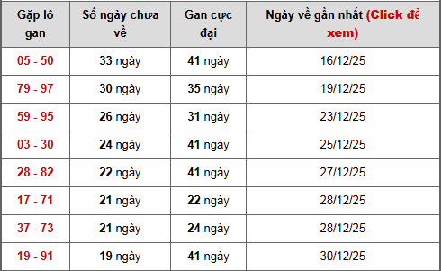 🔹19 – 91: 19 ngày chưa xuất hiện, gan cực đại lên tới 41 ngày. Chu kỳ hiện tại còn dư địa kéo dài, phù hợp để quan sát thêm trong các bản dự đoán xổ số miền bắc ngày 19 tháng 1.
