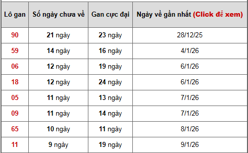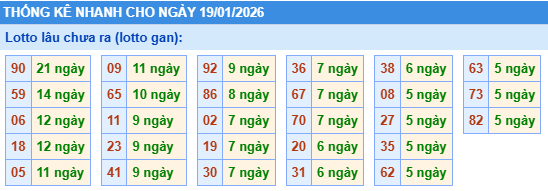 - Bảng thống kê lô gan Miền Bắc lâu chưa về tính đến ngày 19/1/2026