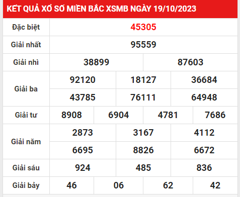 - Bên cạnh đó, Xổ số miền Bắc 45305