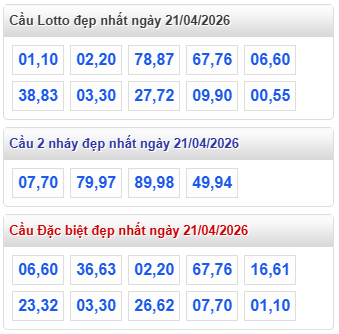 Lưu ý : "Quy luật đẹp nhất" là do hệ thống tự động tính toán theo một số tiêu chí mà XỔ SỐ WAP tính toán. Các bạn nên tham khảo dự đoán kết quả xổ số miền Bắc ngày 21 tháng 4 năm 2026 để tìm ra cặp xổ số đẹp nhất.