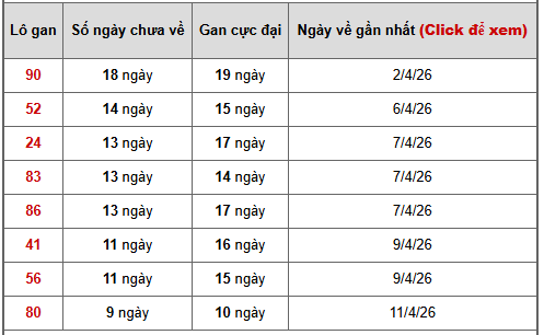 - Bảng thống kê lô gan Miền Bắc lâu chưa về tính đến ngày 21/4/2026