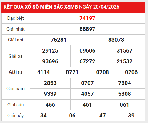 Trước khi dự đoán XSMB 21/4/2026, hãy soi lại kết quả gần nhất để nhanh chóng nắm bắt những con số đang bứt phá.