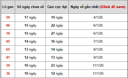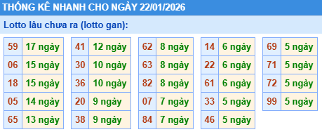 - Bảng thống kê lô gan Miền Bắc lâu chưa về tính đến ngày 22/1/2026