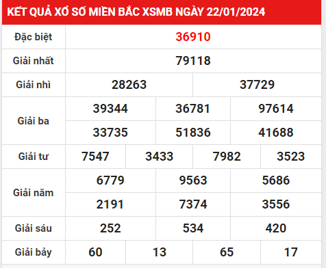 Bí kíp giúp dự đoán KQ xổ số miền Bắc ngày 23/1/2024 chính xác nhất là dựa trên kết quả Miền Bắc những ngày trước đó kết hợp cùng thuật toán xác suất Phân tích thống kê chuyên sâu và những nhận định của chuyên gia để đưa ra kết quả chuẩn xác nhất trong ngày hôm nay.