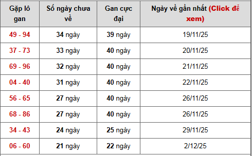 Phân tích tổng hợp bảng cặp số lô gan XSMB: