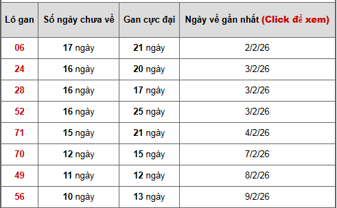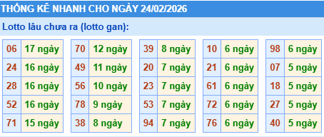 - Bảng thống kê lô gan Miền Bắc lâu chưa về tính đến ngày 24/2/2026