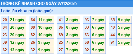 - Bảng thống kê lô gan Miền Bắc lâu chưa về nhất tính đến hôm nay 27/12/2025