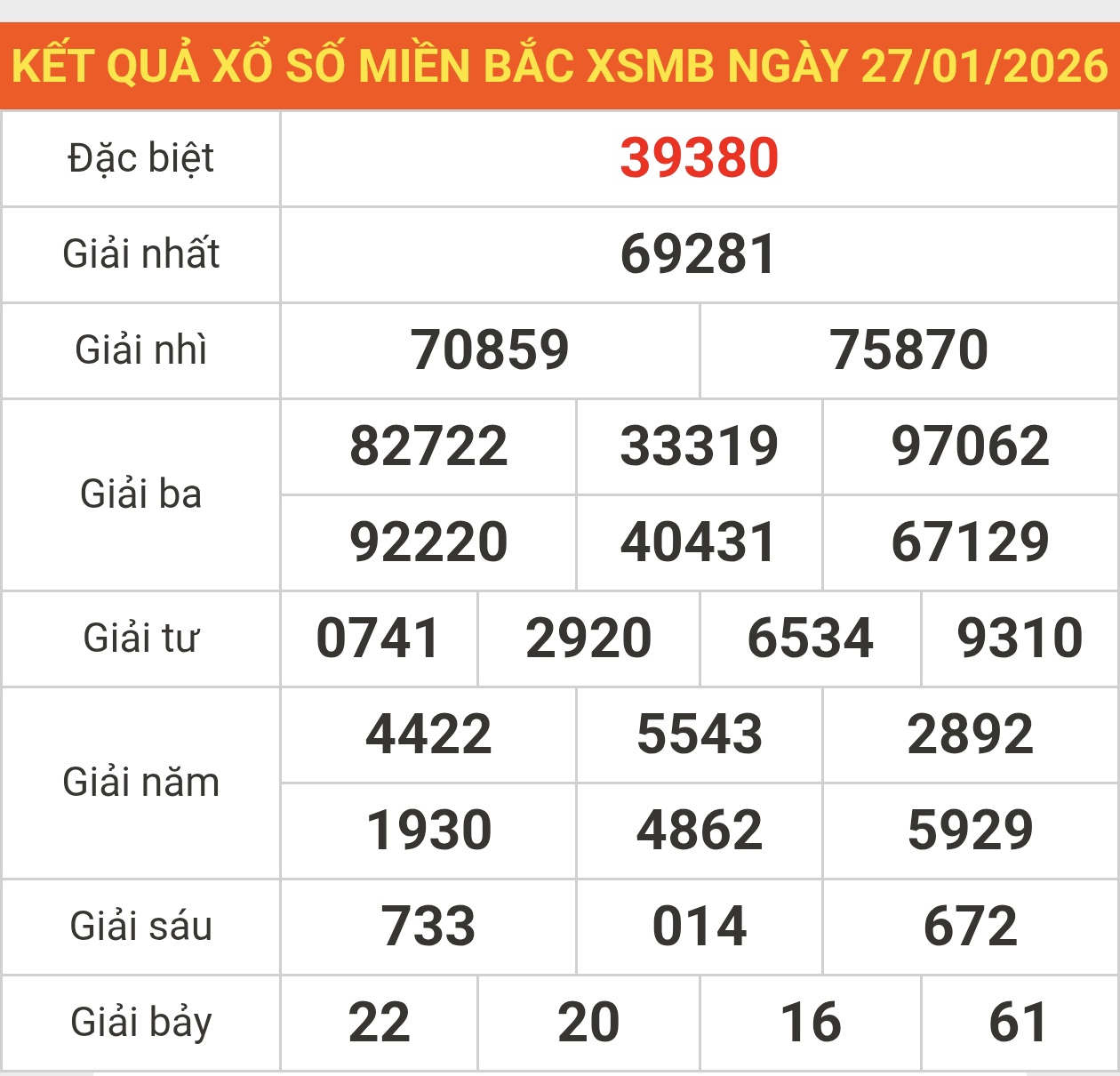 - Ngoài ra, KQXS miền Bắc hôm nay 39380