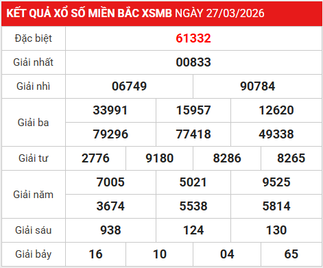 Trước dự đoán XSMB 28/3/2026, cùng điểm lại kết quả miền Bắc tối qua để nắm chắc các cặp số đáng chú ý.