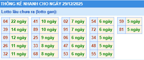 - Bảng thống kê lô gan Miền Bắc lâu chưa về ngày 29/12/2025: