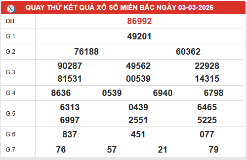 Tham khảo quay thử xổ số miền Bắc 3/3/2026 cùng dữ liệu soi cầu xổ số miền Bắc ngày mùng 3 tháng 3 năm 2026 đang hé lộ nhiều tín hiệu đáng quan tâm, giúp nhận diện các con số tiềm năng trước giờ quay.