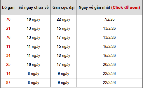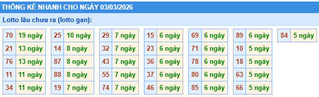 - Bảng thống kê lô gan Miền Bắc lâu chưa về tính đến ngày 3/3/2026
