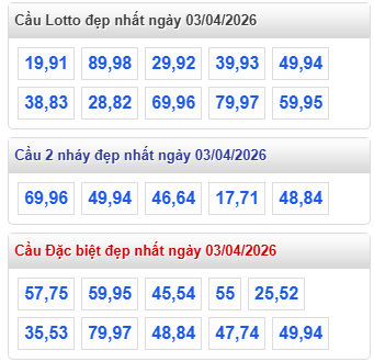 Lưu ý : "Quy luật đẹp nhất" là do hệ thống tự động tính toán theo một số tiêu chí mà XỔ SỐ WAP tính toán. Các bạn nên tham khảo dự đoán kết quả xổ số miền Bắc ngày 3 tháng 4 năm 2026 để tìm ra cặp xổ số đẹp nhất.