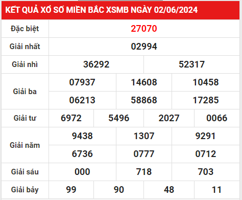 - Bên cạnh đó, Kết quả xổ số miền Bắc 27070