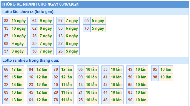 Thống kê XSMB 3/7/2024 - Dự đoán Xổ Số Miền Bắc thứ 4