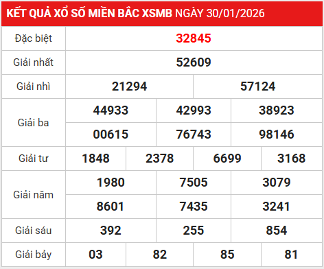 - Ngoài ra, KQXS miền Bắc hôm nay 32845
