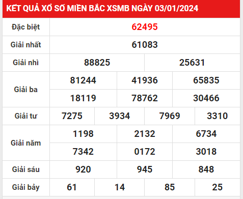 Thống kê XSMB 4/1/2024 - Dự đoán Xổ Số Miền Bắc thứ 5