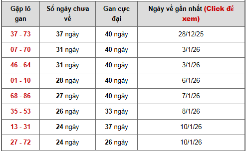 🔹37 – 73: Đang gan 37 ngày, chỉ còn cách mốc gan cực đại 40 ngày khá sát. Đây là cặp số thuộc nhóm gan sâu, thường dễ tạo đột biến khi chạm ngưỡng, rất đáng chú ý khi soi cầu XSMB ngày 4/2/2026.