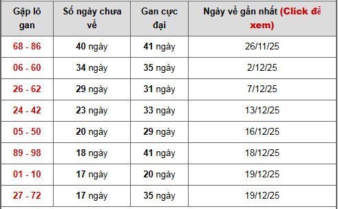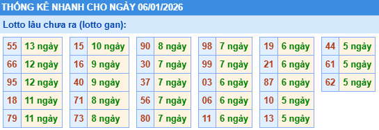 - Bảng thống kê lô gan Miền Bắc lâu chưa về tính đến ngày 6/1/2026
