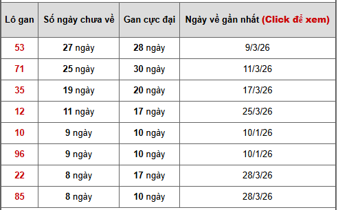 🔹53 đang có 27 ngày chưa về, gan cực đại 28 ngày, chỉ còn 1 ngày nữa là chạm đỉnh gan – đây là lô gan đáng chú ý nhất bảng.